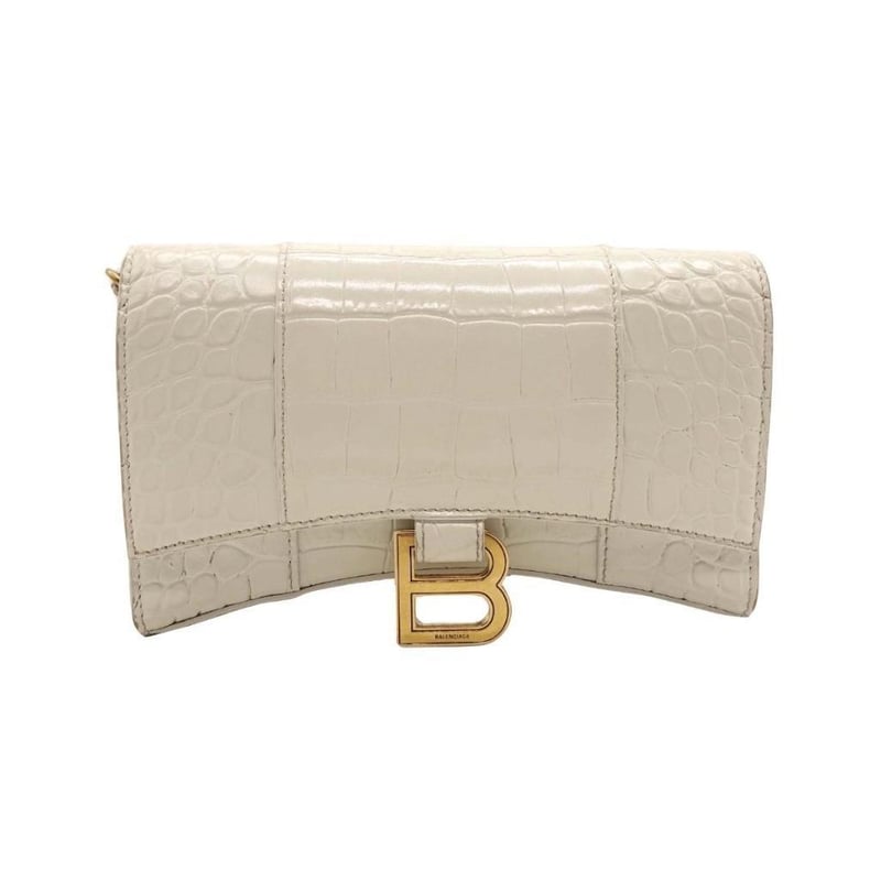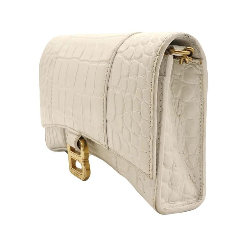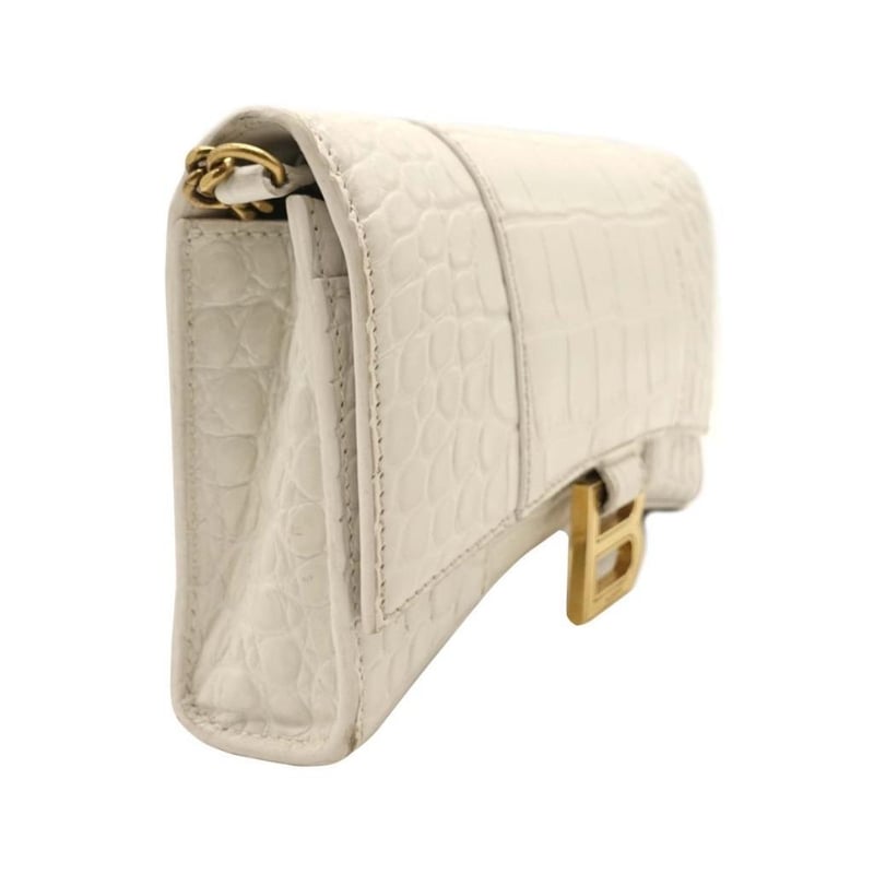 BALENCIAGA CROC EMBOSSED LEATHER HOURGLASS WALLET ON CHAIN