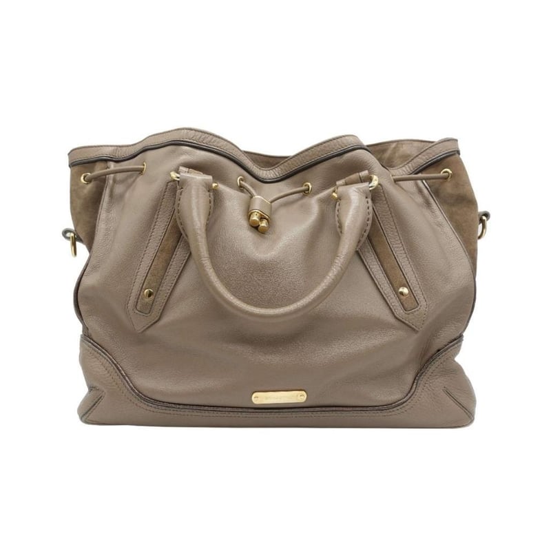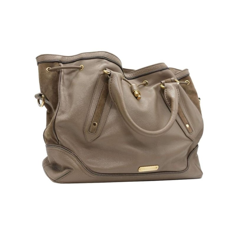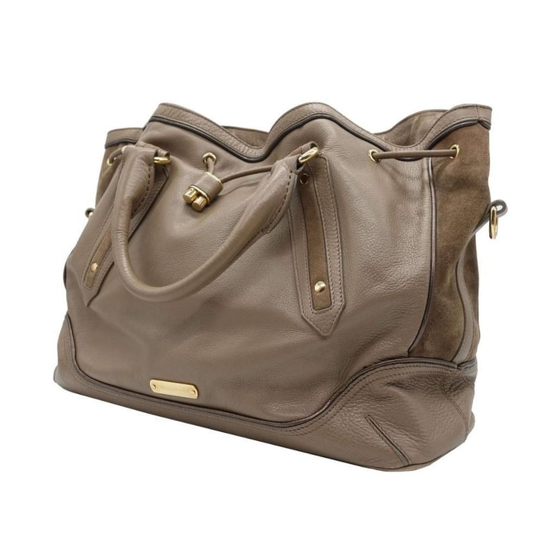 BURBERRY LEATHER AND SUEDE EARLSBURN TOTE BAGExterior MaterialLeather And Suede With Gold-Tone Hardware, Dual Rolled Top Handles, Drawstring Closure And A Shoulder Strap.Interior MaterialTextile Lining With A Main Compartment, A Zipped Pocket And Two Patch Pockets.Additional Condition Report- Minor Sign Of Wear And Tears On Exterior And Handles- Moderate Scuffs And Creases On Exterior Corners- Minor Wear In Interior- Sign Of Wear And Scratches On HardwareComes With- Original Dustbag- A Detachable Strap- Certificate Of AuthenticitySize: Length: 40cmHeight: 30cmDepth: 17cmHandle Drop: 10cmStrap Drop: 44cm Detachable AdjustableCondition: Good - Refer Images163141+6