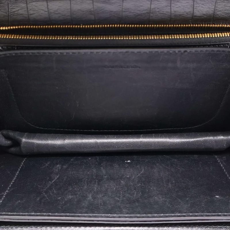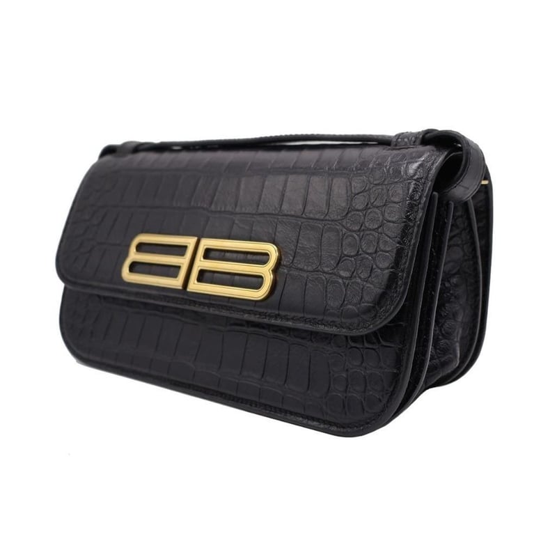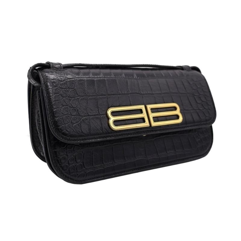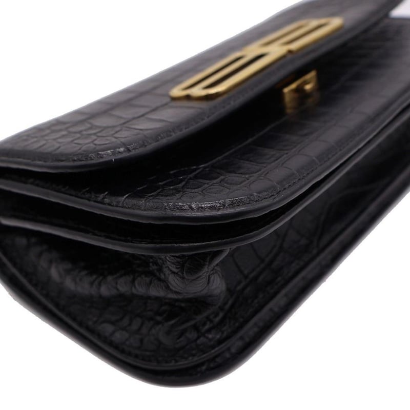 BALENCIAGA BLACK CROC EMBOSSED LEATHER GOSSIP SHOULDER BAGExterior MaterialLeather With Gold-Tone Hardware, A Rear Pocket, Push-Lock Flap Closure And A Shoulder Strap.Interior MaterialLeather Lining With Two Main Compartments, A Zipped Pocket And A Slip Pocket.Additional Condition Report- Minor Sign Of Wear And Tears On Exterior- Moderate Scuffs And Wear In Interior- Sign Of Wear And Scratches On HardwareComes With- Original Dustbag- Certificate Of AuthenticitySize: Length: 25cmHeight: 13cmDepth: 7cmStrap Drop: 44cmCondition: Good - Refer Images163141+36