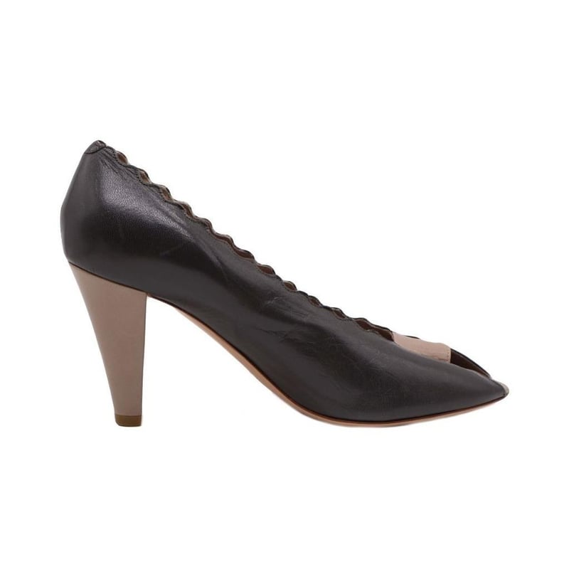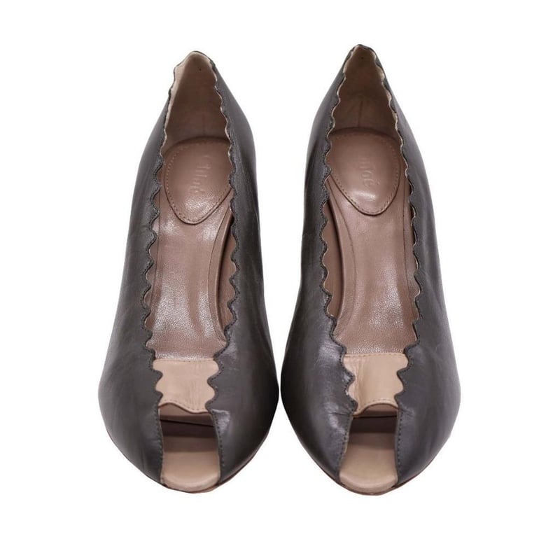 CHLOE SCALLOPED PEEP-TOE LEATHER PUMPS SIZE 38