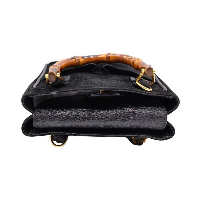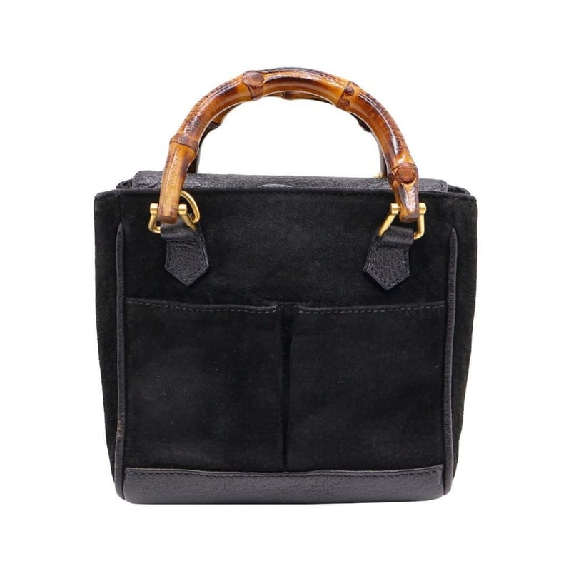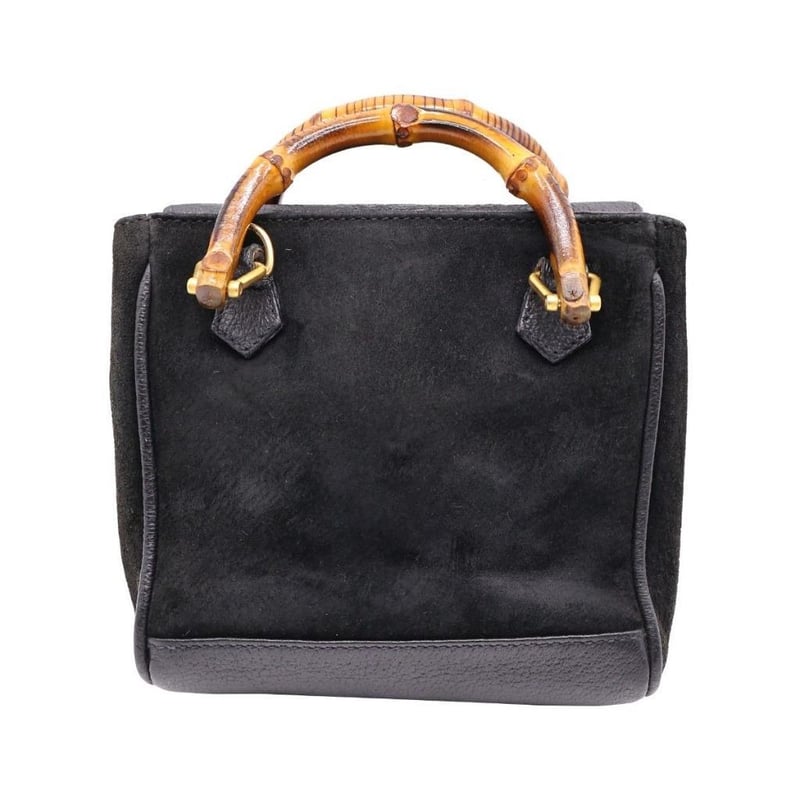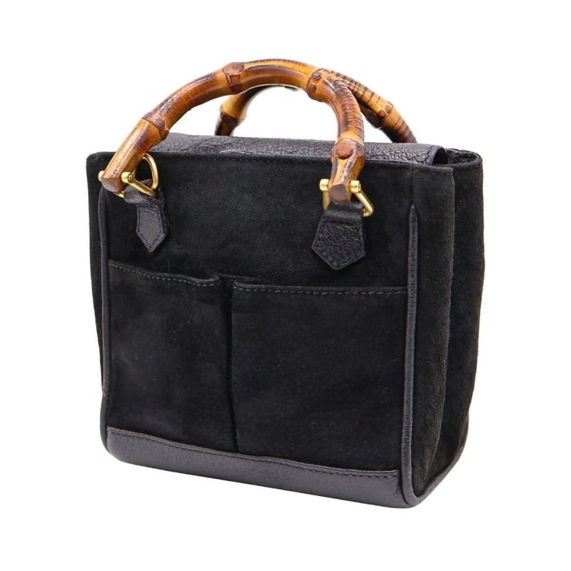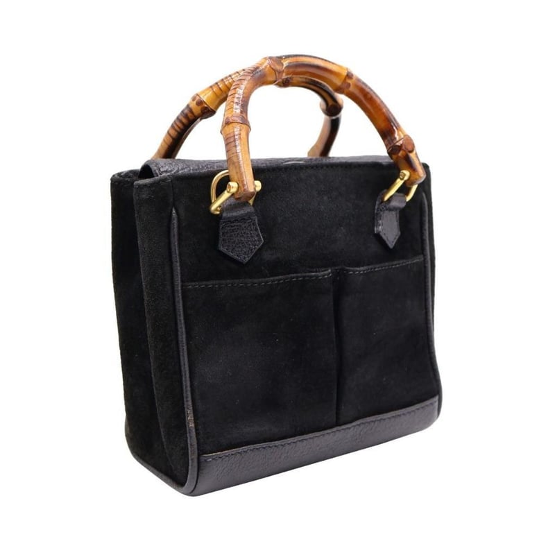 GUCCI VINTAGE MINI SUEDE BAMBOO HANDBAG
