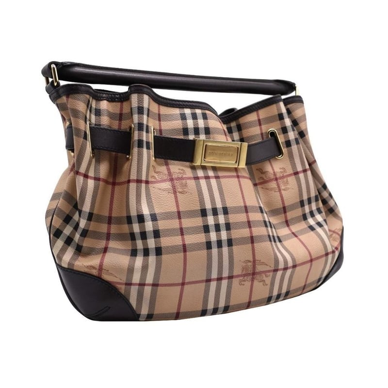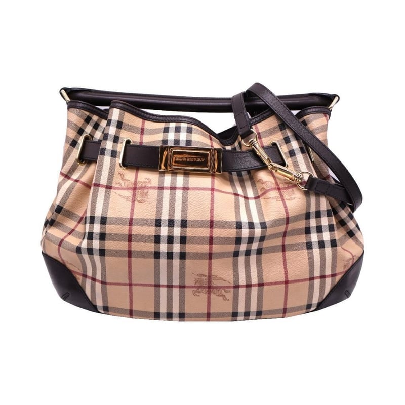 BURBERRY HAYMARKET CHECK BEIGE COATED CANVAS AND LEATHER WILLENMORE HOBO