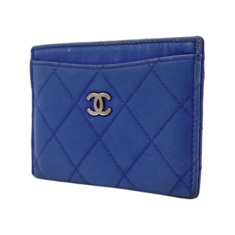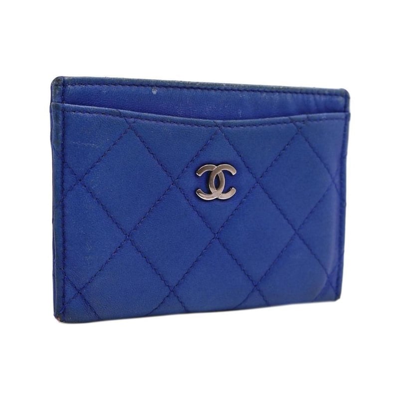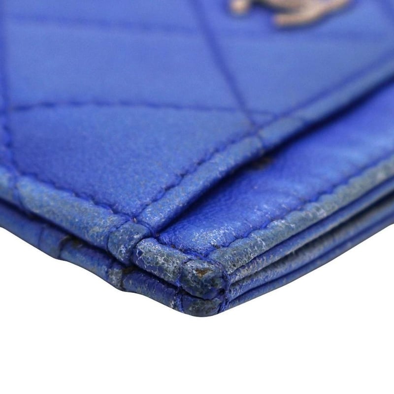 CHANEL BLUE QUILTED LEATHER CARD HOLDER