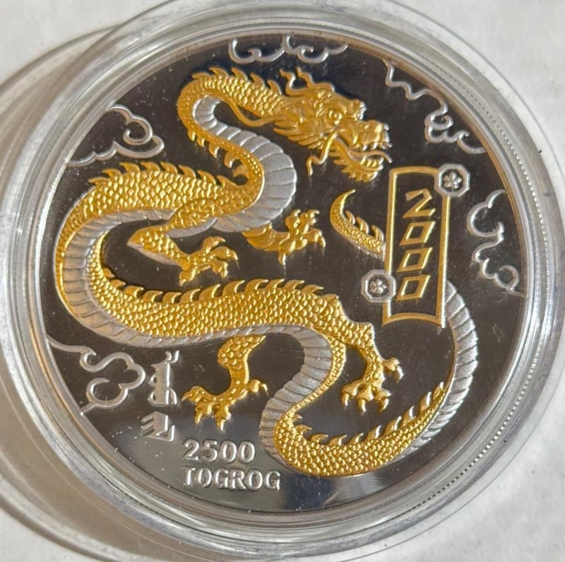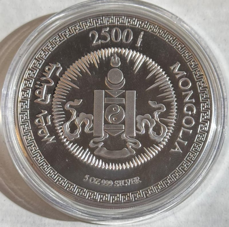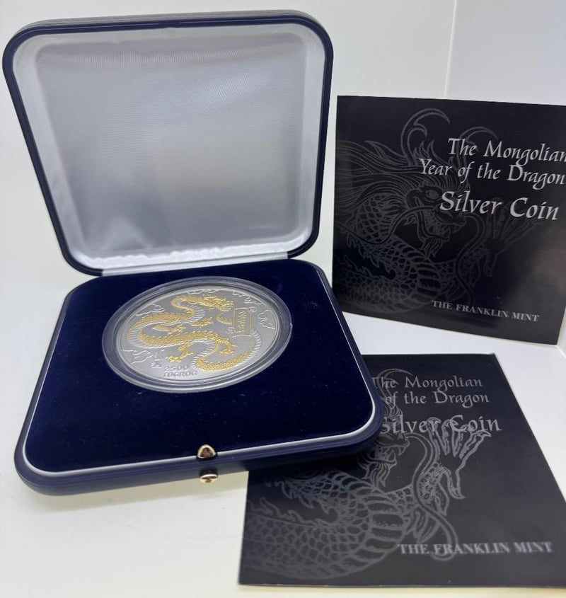 5 OZ .999 SILVER FRANKLIN MINT ' THE MONGOLIAN YEAR OF THE DRAGON ' SILVER COIN