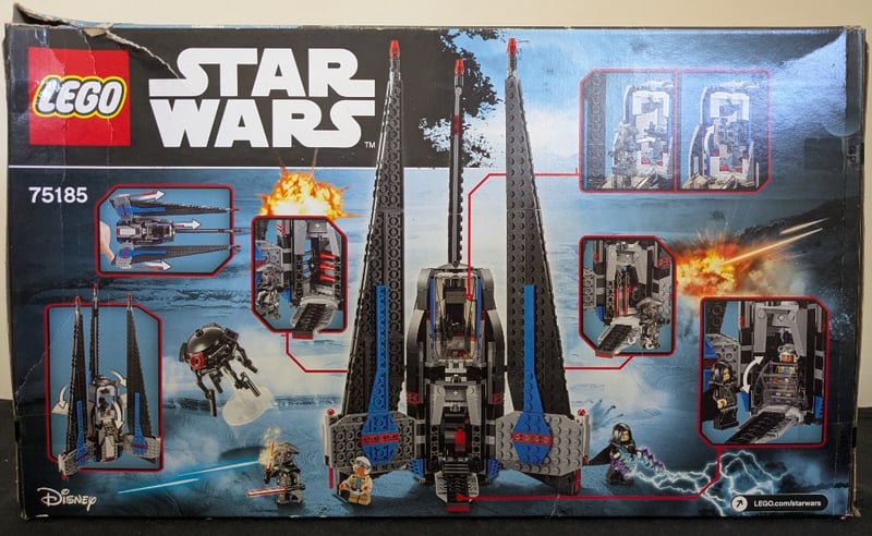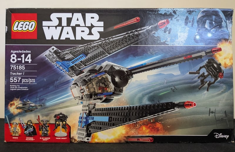 Lego Star Wars Tracker I (Set 75185) Featuring 557 Pieces With Buildable Starship, Minifigures Including Dorian, Emperor'S Shadow Guard, Ki-Ad Porter, And Probe Droid. Original Retail Packaging Shows Significant Wear With Creasing And Edge Damage. Set Appears Complete Based On Box Contents Display. Ages 8-14. Classic First Order Vessel From Star Wars Franchise.