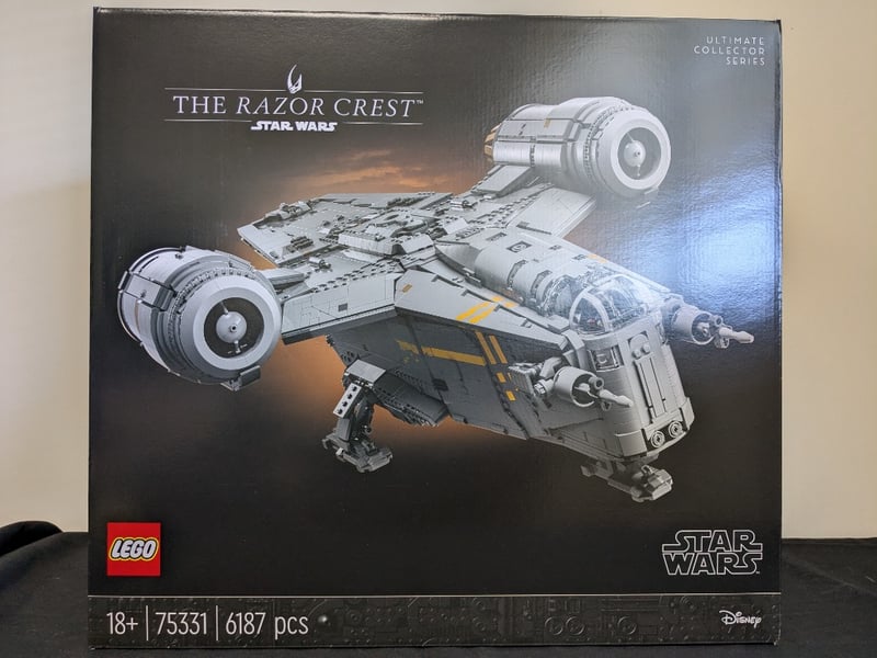 Sealed Lego Star Wars The Razor Crest Ultimate Collector Series Set 75331 Featuring 6187 Pieces. This Premium Collectible Includes The Iconic Spacecraft With Detailed Engine Pods, Opening Cargo Bay With Cockpit Interior, Landing Gear, And Minifigures Including Din Djarin And Grogu On Blurrg Mount. Complete With Original Packaging And Never Assembled Condition.