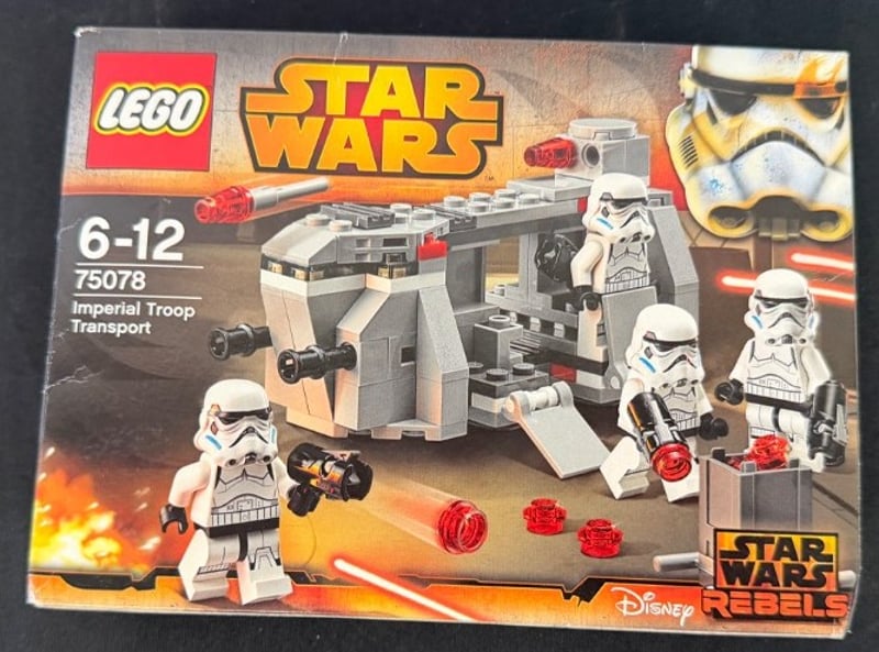 Lot Comprising Two Lego Star Wars Sets Featuring Imperial Stormtrooper Minifigures. Set 75197 First Order Specialists Battle Pack Includes Four Uniquely Equipped Stormtrooper Minifigures With Blasters, A Poseable Turret Weapon Platform, And Red Illuminated Elements. Set 75078 Imperial Troop Transport Features A Buildable Transport Vessel With Opening Cargo Bay, Four Classic Stormtrooper Minifigures, Multiple Accessory Weapons, And Detailed Interior Compartments. Retain Original Packaging