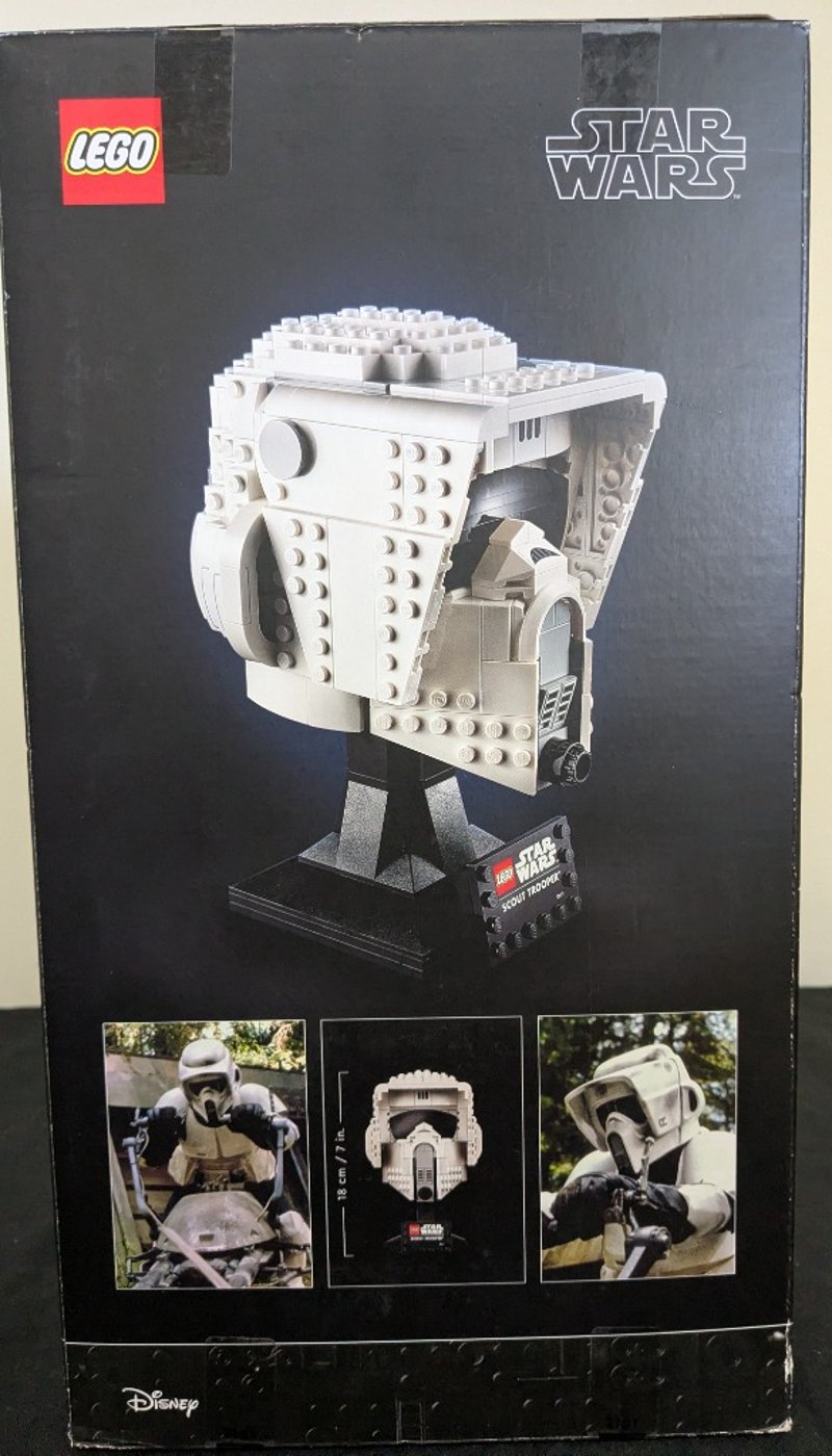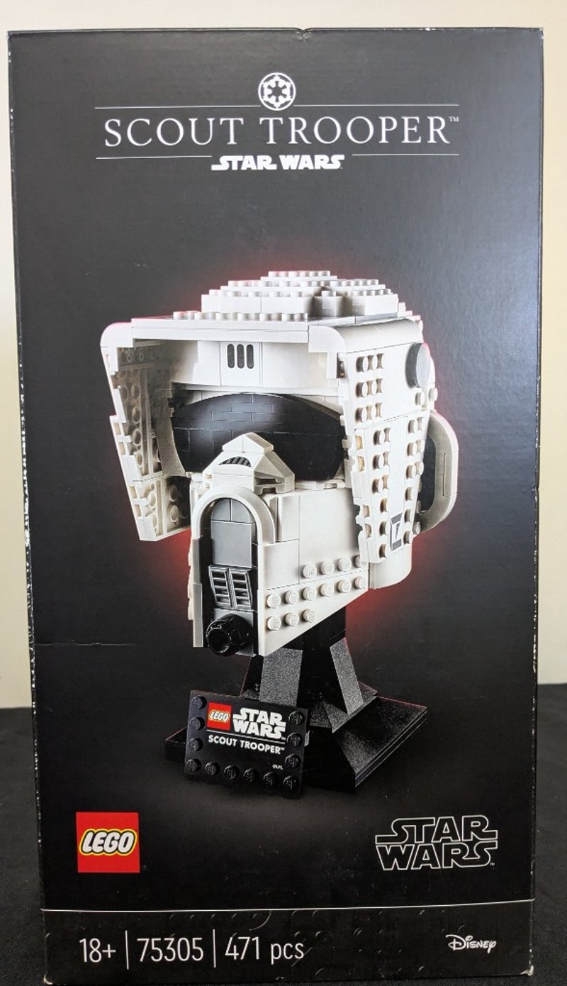 LEGO STAR WARS SCOUT TROOPER COLLECTIBLE HELMET SET 75305Lego Star Wars Scout Trooper Helmet (Set 75305) Featuring 471 Pieces, Adult-Rated (18+) Buildable Display Piece. White And Black Modular Construction With Detailed Interior Spaceship Element And Articulated Visor. Includes Display Stand With Branded Nameplate. Collectible Disney Star Wars Licensed Merchandise In Original Packaging.Condition: Good - Refer To Images584522+112