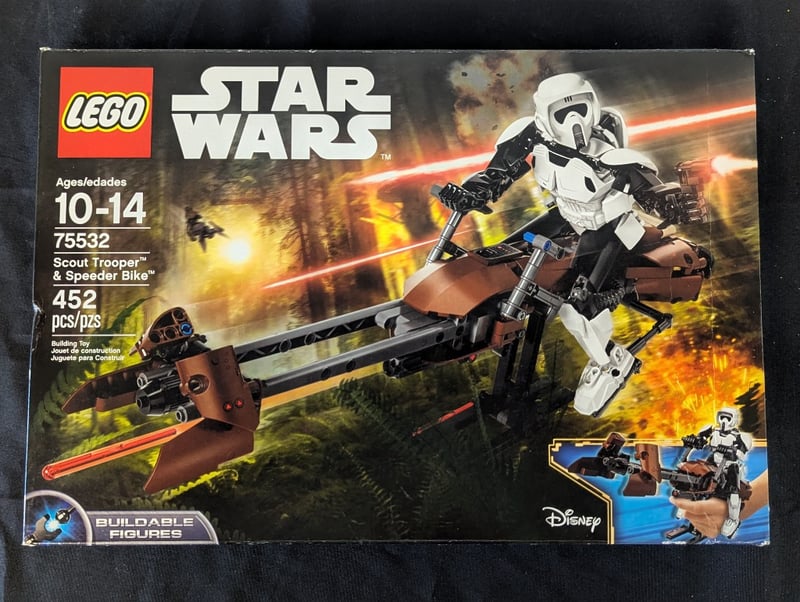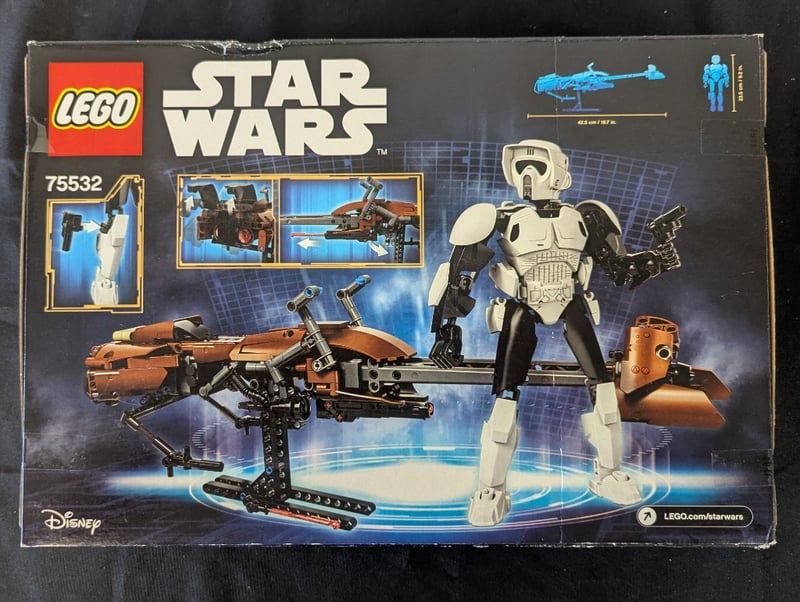 LEGO STAR WARS SCOUT TROOPER & SPEEDER BIKE SET 75532Lego Star Wars Buildable Figure Set #75532 Featuring Scout Trooper With Poseable Articulated Frame And Motorized Speeder Bike With Rotating Elements. Contains 452 Pieces, Designed For Ages 10-14. Includes Minifigure Accessory With Blaster Weapon. Original Retail Packaging With Construction Instructions. Disney Licensed Product Showcasing Detailed Stormtrooper Armor Construction And Functional Vehicle Mechanics.Condition: Good - Refer To Images584522+52