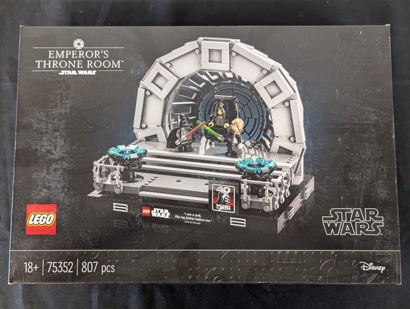 Lego Star Wars Emperor'S Throne Room (75352) - Adult Collectible Set Featuring 807 Pieces. Includes Iconic Throne Room Scene With Detailed Architectural Elements, Minifigures Of Darth Vader, Emperor Palpatine, And Luke Skywalker, Illuminated Display Base With Cyan Accent Lighting, And Removable Throne Platform. Age Rating 18+. Sealed/Unused Condition With Original Packaging.