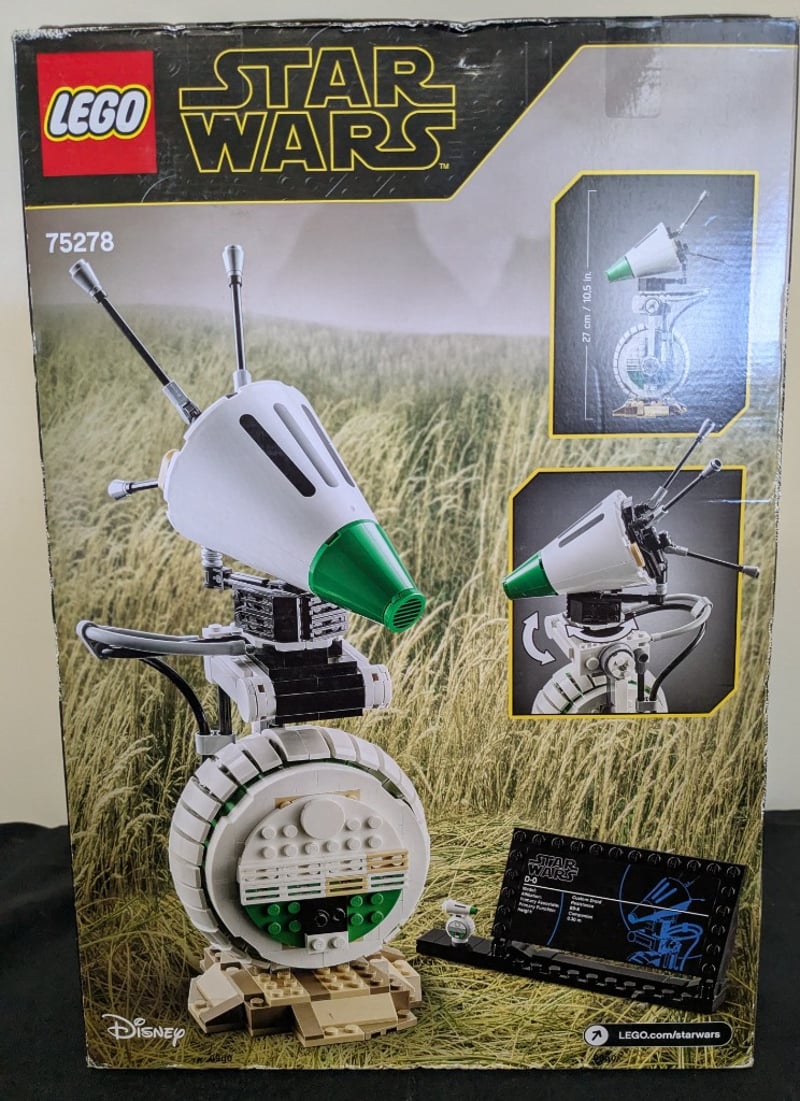 LEGO STAR WARS D-O BUILDABLE FIGURE SET 75278Lego Star Wars D-O™ (Set 75278) Features A Detailed Buildable Droid Companion From The Sequel Trilogy. This Age 10+ Construction Set Includes The Iconic Rolling Astromech With White And Green Coloring, Articulated Head With Dual Antenna, Poseable Body, And Tan Base Platform. The Set Showcases Intricate Mechanical Detailing With Rotating Wheel Mechanism And Interconnected Black Framework. Original Packaging Includes Instruction Manual And Promotional Materials. A Premium Collectible For Star WarsCondition: Good - Refer To Images584522+132