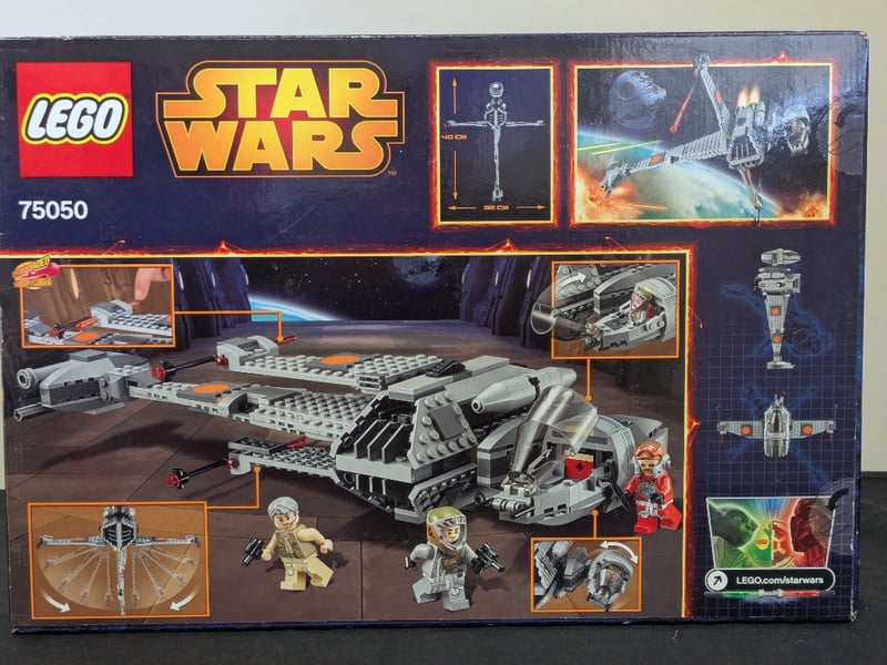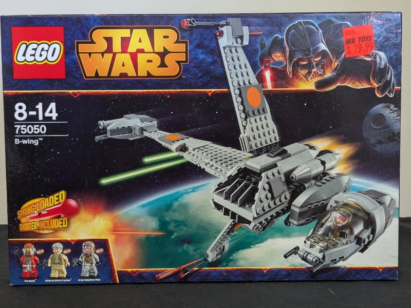 Vintage Lego Star Wars Set 75050 Featuring The Iconic B-Wing Starfighter With Moveable Wings And Rotating Cannons. Includes Three
