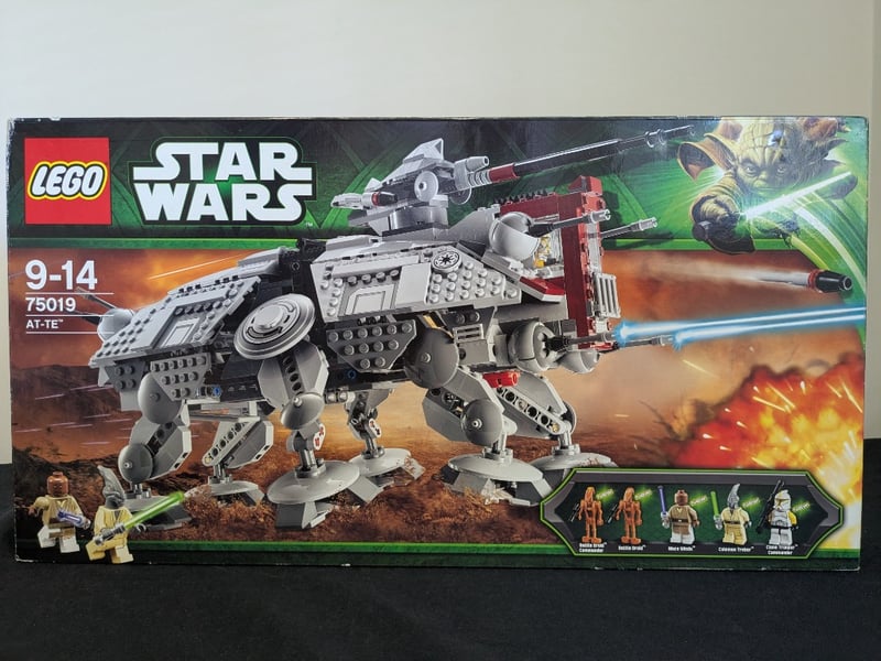 Lego Star Wars At-Te (All Terrain Tactical Enforcer) Set 75019, Designed For Ages 9-14. Features A Detailed Motorized Walker With Articulated Legs, Rotating Turret, And Dual Laser Cannons.