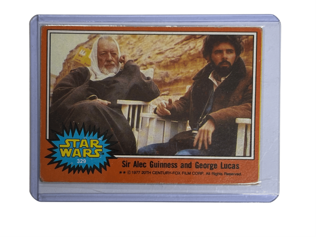 1977 STAR WARS CARD #329 – ALEC GUINNESS & GEORGE LUCAS BTSHistoric Image Of Sir Alec Guinness (Obi-Wan Kenobi) Seated With George Lucas During Filming. A Must-Have For Collectors Of Cinematic History.- 1977 Topps Star Wars Series- Card #329 – Brown Border- Behind-The-Scenes With Lucas And GuinnessDisclaimer: Minor Imperfections May Exist On Card Surfaces Or Sleeves.584901+61