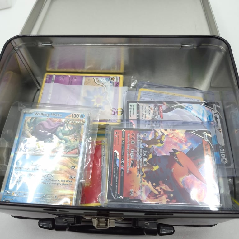 Pokemon Collection In Genuine Pokemon Tin Rare Cards Included Such As: - TALONFLAME V - DUBWOOL V - 25th ANNIVERSARY CELEBRATIONS DIALGA - ANCIENTS - TIN INCLUDED SOLD AS LOT Condition: Good - Refer To Images LOCATED RACK 7A 586073+3