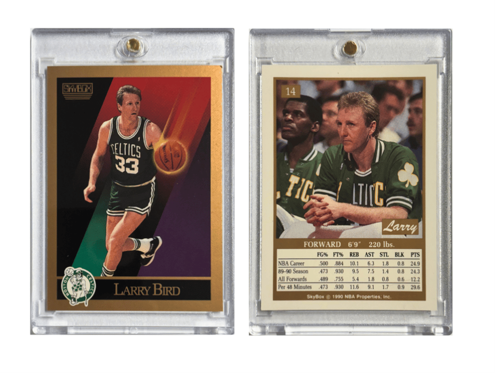 1990 LARRY BIRD SKYBOX CARD #14 – BOSTON CELTICS LEGEND (NBA)A Classic 1990 Skybox Basketball Card Featuring Boston Celtics Legend Larry Bird. The Back Of The Card Includes Career And Per-48-Minute Stats, Along With A Focused Courtside Photo During Gameplay. A Must-Have For Vintage Nba Collectors.- 1990 Skybox Larry Bird #14- Boston Celtics Forward – Hall Of Famer- Includes Full Stats On ReverseSize: Condition: Good - Refer To Images+10
