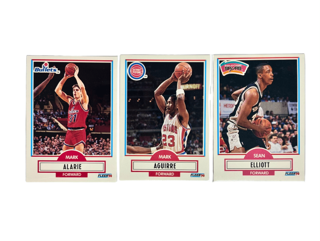 1990 FLEER NBA CARD LOT (X3) – ALARIE, AGUIRRE & ELLIOTTThis 3-Card Mini Lot From 1990 Fleer Basketball Includes Forwards Mark Alarie (Bullets), Mark Aguirre (Pistons), And Sean Elliott (Spurs). Classic Early-90S Basketball Design Perfect For Starter Collections.- 1990 Fleer Basketball Set- Players: Alarie, Aguirre, Elliott- Classic Team Uniforms And Era-Specific Design- Great For Fans Of 90S NbaSize: Condition: Good - Refer To Images+22