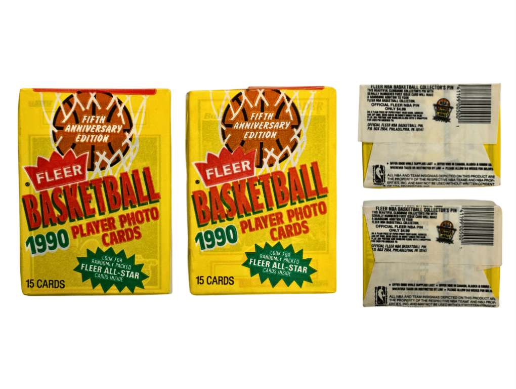 1990 FLEER BASKETBALL UNOPENED PACKS (2) – 5TH ANNIVERSARY EDITIONSet Of Two Unopened 1990 Fleer Basketball Card Packs. Fifth Anniversary Edition Containing 15 Player Photo Cards Each, Plus A Fleer All-Star Insert. Perfect For Collectors Or Sealed Pack Investors.- Two Sealed 1990 Fleer Basketball Packs- 5Th Anniversary Edition- 15 Cards Per Pack With All-Star Insert Potential- Unopened With Original WrappersSize: Condition: Good - Refer To Images+73