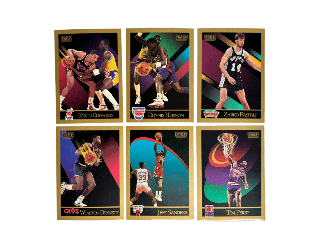 1991-92 FLEER NBA CARDS (6) – GOLD BORDERS SETSix-Card Lot From The 1991-92 Fleer Basketball Series. Includes Kevin Edwards, Dennis Hopson, Zarko Paspalj, Tim Perry, And Others. Eye-Catching Gold Border Designs With Vintage Player Action.- 6 Fleer Nba Cards From 1991-92- Players Include Paspalj, Hopson, Edwards, Perry- Great Display Of Early '90S Nba PhotographySize: Condition: Good - Refer To Images+102