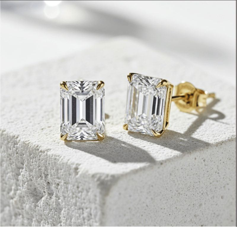 14K YELLOW GOLD LAB GROWN EMERALD EARRING