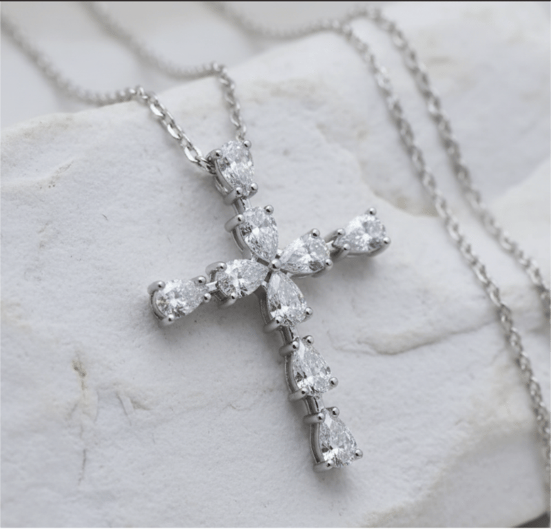18K WHITE GOLD LAB GROWN PEAR CROSS PENDANT
