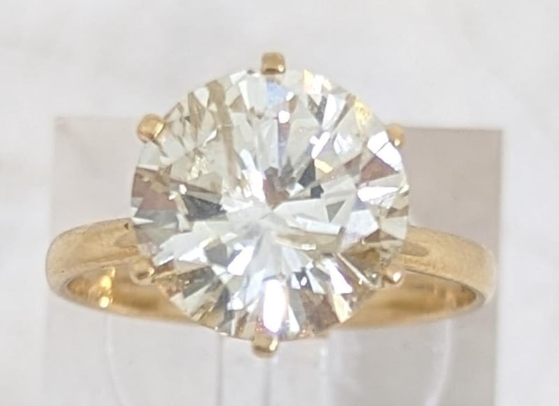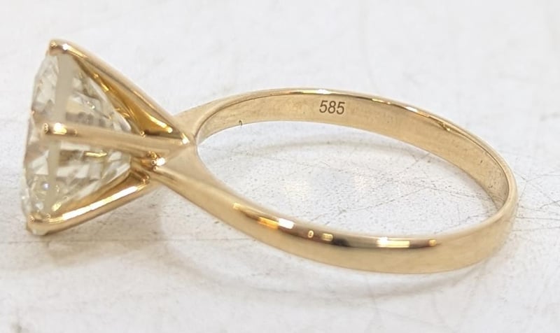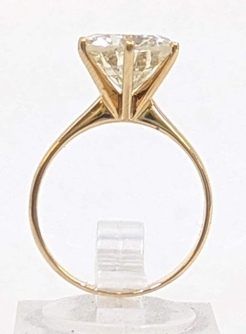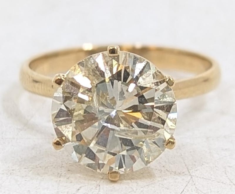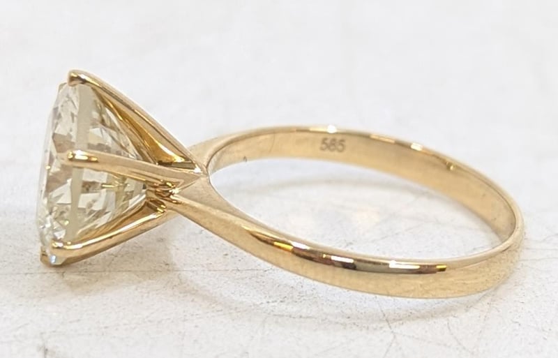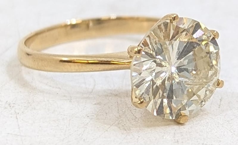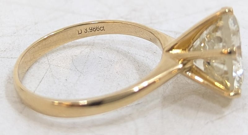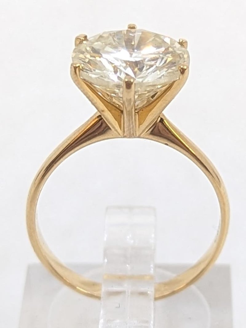 14CT YELLOW GOLD DIAMOND SOLITAIRE RINGCut: Round BrilliantColour: L/MClarity: I1Diamond Carat: 3.986CtCarat: 14CtTotal Item Weight: 2.90gMarkings: Stamped 14K/585Condition: Good - Refer To ImagesThis valuation has been conducted by an independent third-party professional. The valuation amount is an assessment by the issuing valuer and does not reflect the auction value of the item.Any inquiries regarding the valuation should be directed to the issuing valuer (refer to contact details on the certificate), as Lloyds Auctions has no affiliation or influence over the valuation, the valuer, or the stated amount.Insurance Replacement Valuation Amount: $105,000.00584973+1