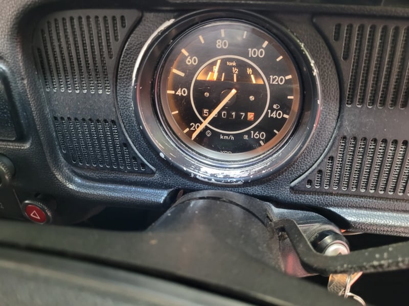 Powered by a 1.6-litre four-cylinder petrol engine paired with a 4-speed manual transmission, this Beetle shows an indicated 55,017 miles. It features tinted windows, a battery isolator, rubber floor mats, window shades, and a spare wheel. Various age-related issues are noted, including rust, minor damage, interior wear, a loose passenger-side door lock barrel, a broken fuel pump switch (still operational), and a driver’s seat that does not lock into place. Inspection is recommended.