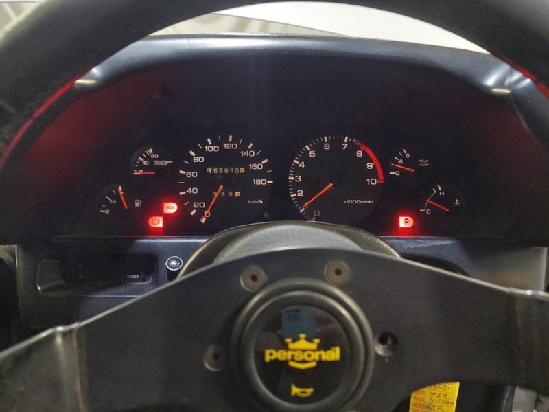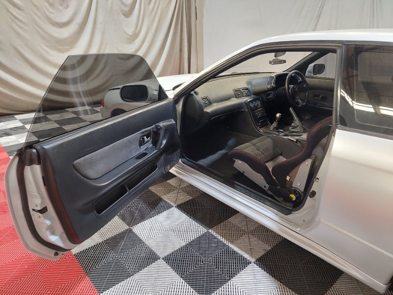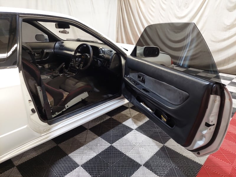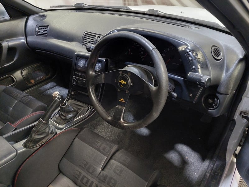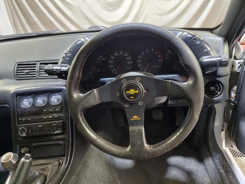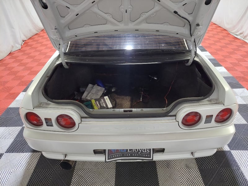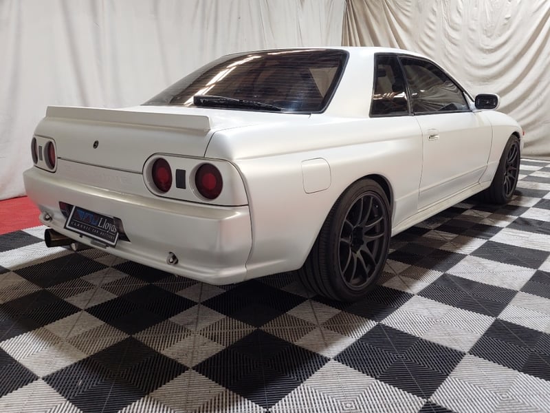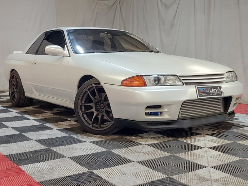 1989 Nissan Skyline R32 GT‑R (BNR32) two-door coupe finished in white, featuring Nissan’s iconic ATTESA all-wheel-drive system. Powered by the legendary 2.6-litre inline six twin‑turbo petrol engine paired with a manual transmission. Odometer indicating 159,550 kilometres.