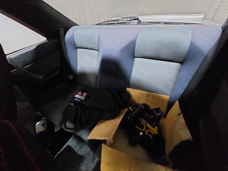 Drivetrain includes a rebuilt twin‑plate clutch (less than 5,000 km) and reconditioned gearbox with new synchros. Suspension is upgraded with Tein Super Street coilovers. Additional features include Work CR Kai wheels, Bride Low Max XL seats with Kevlar backs, AX Film Ceramic White wrap, and a full custom 3‑inch exhaust system.