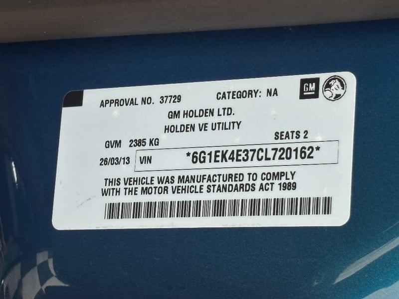 2013 Holden VE SV6 Ute single-cab chassis finished in blue. Rear-wheel drive configuration powered by a 3.6-litre V6 petrol engine paired with a six-speed manual transmission. Odometer indicating just 3,744 kilometres.