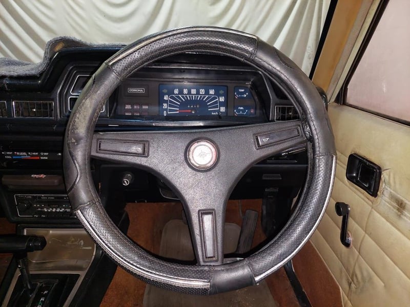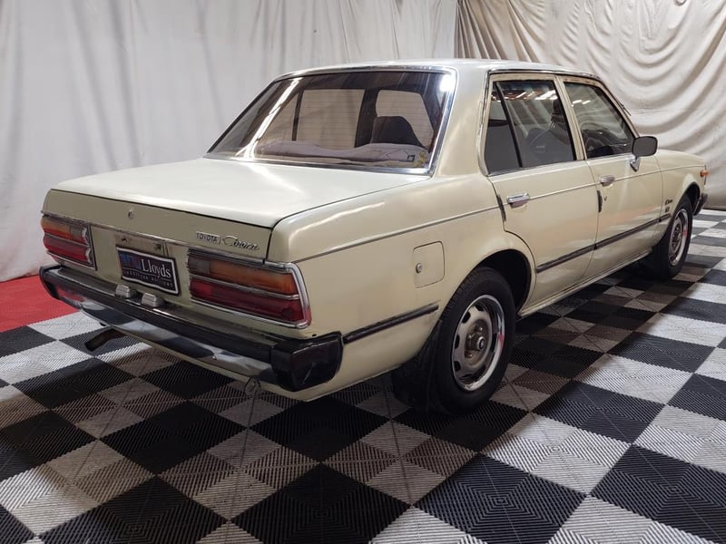 Toyota Corona XT130 four-door sedan finished in cream, featuring a rear-wheel-drive layout and automatic transmission. Powered by a 1.9-litre four-cylinder petrol engine. Odometer indicating 239,211 kilometres. A straightforward classic Toyota sedan offering solid mechanical simplicity and restoration or daily classic potential.