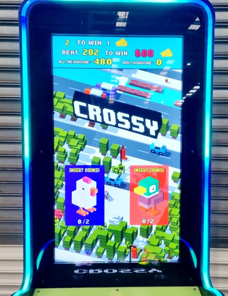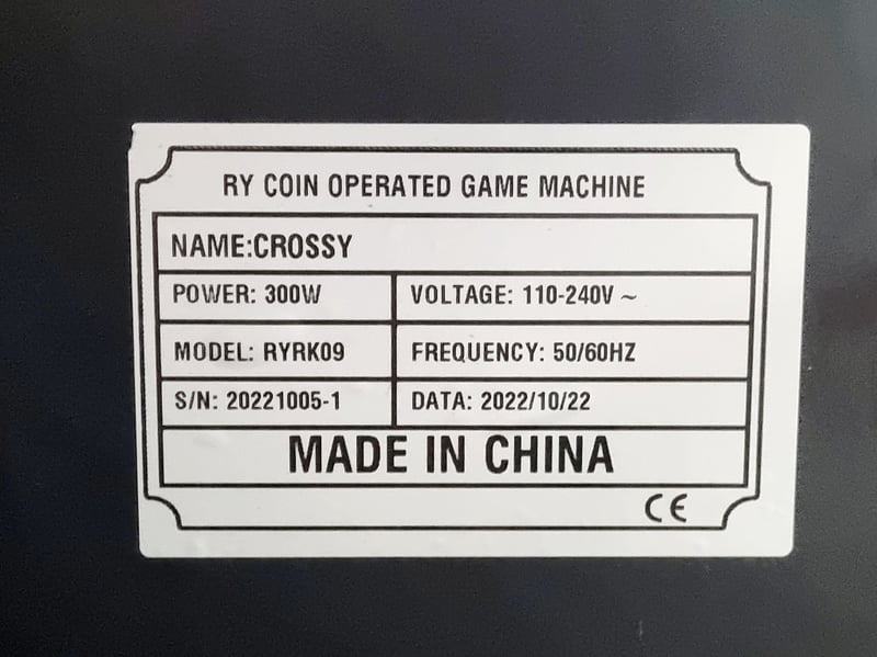 Amusement Arcade Machine CROSSY, Model: RYRK09, Serial: 20221005, Excellent working game 2.5 yrs old and a consistent earner. ROI on these games occurs quickly. Don’t pay $15,000+ for this game elsewhere. QR Code Manual available on request, Does Not Include Key. Approx Dimensions: 240cm X H, 77cm X W, 99cm X D