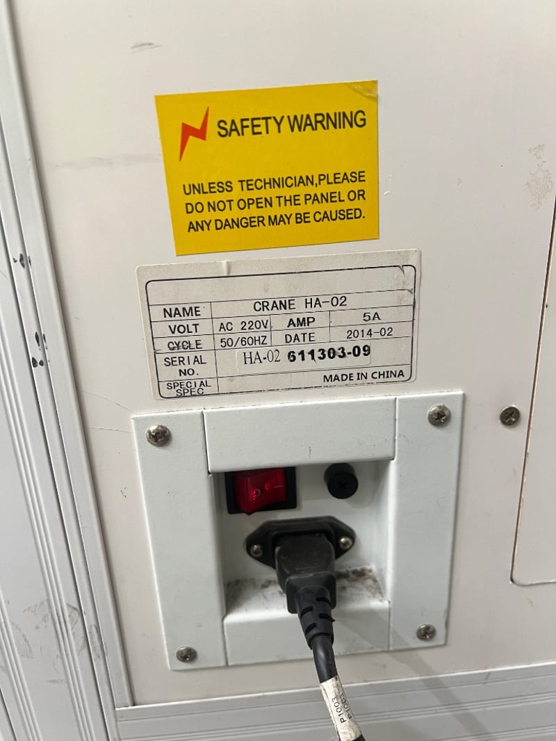 Redemption Arcade Machine, Prize castle 31, model; CRANE HA-02, serial; HA-02 611303-09, includes; power cord, key, manual, not set to free play Dimensions approx; H194 x W90 x D75 cm