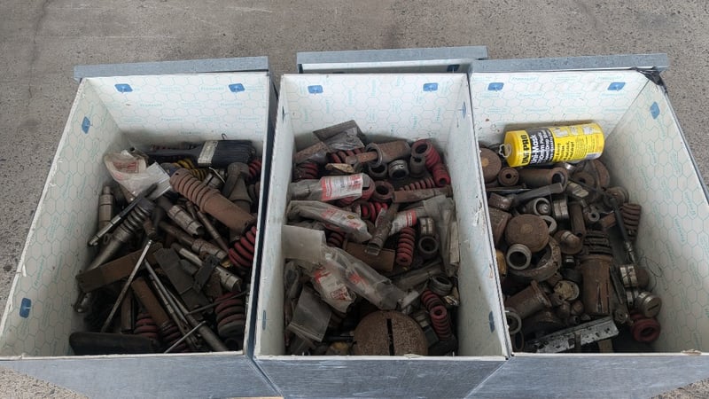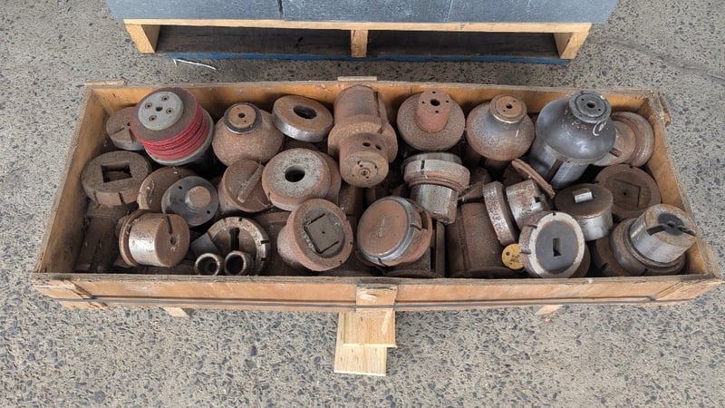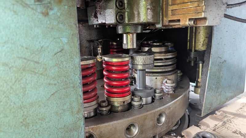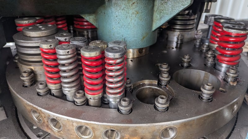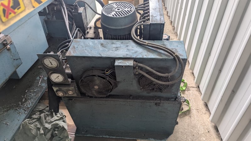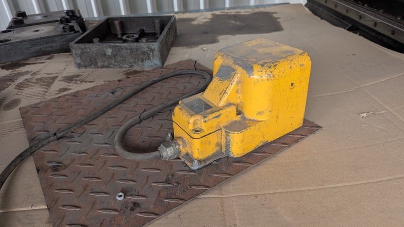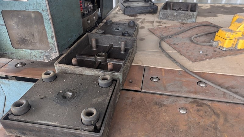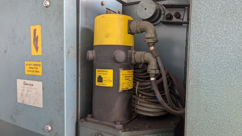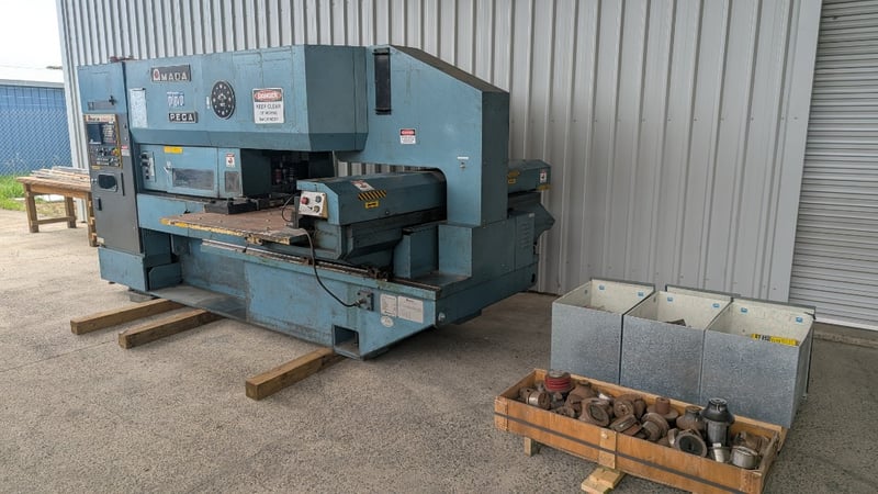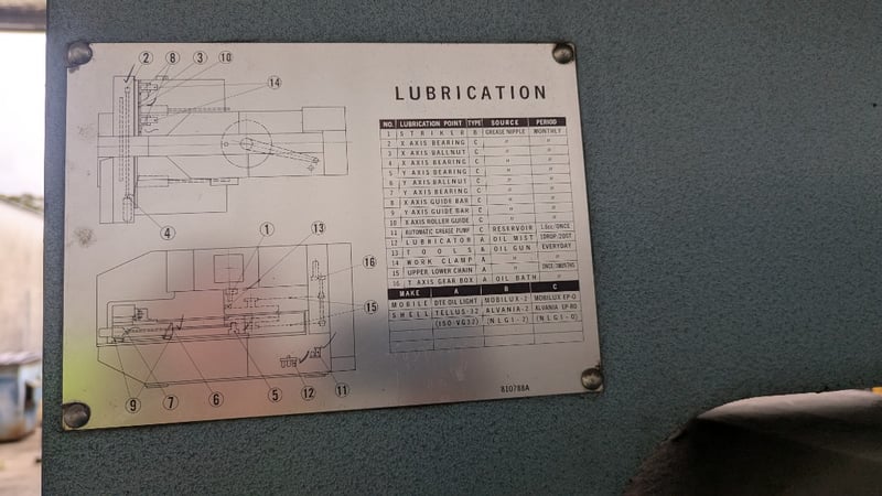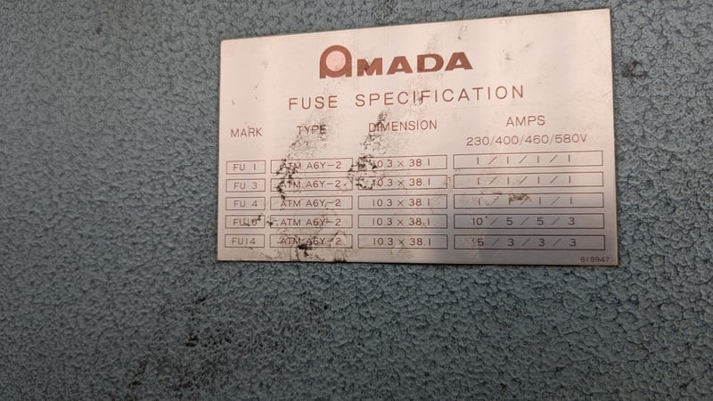 N.C Turret Punch Press, Amada, Model: PEGA - 204040, Serial No: P2440362, Capacity 20 Tons, No of Turret Stations 30, Power Required 15 KVA, 3 Phase Power, Date of Manufacture 1987, 2 × AC Motors, 4 × DC Servo Motors, Amada - Fanuc - P Control Panel, UOD MSA-C50T-P Hydraulic Motor, Includes Shock Absorbering Floor Plates, Assorted Hubs and Spare Parts, Weight 8.5 Ton, Dimensions 205cm(H)×400cm(W)×235cm(D)