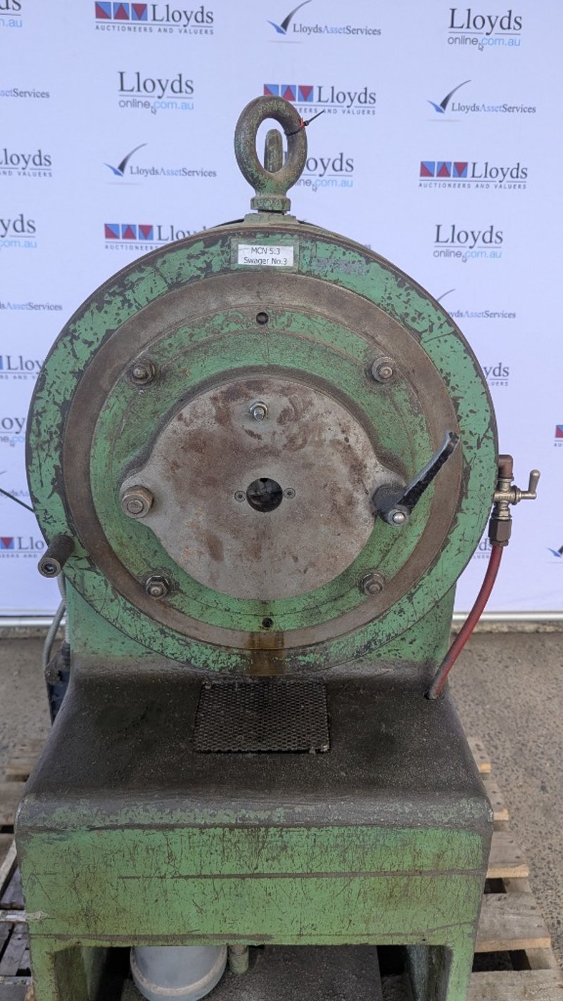 Rotary Swaging Machine, Stevens & Bullivant Ltd, Size: No 8, Type: Standard, Serial No: 6732, Foot Pedal Control, 3 Phase Power, Lifting Points, Includes Various Does, Dimensions 135cm(H)×80cm(W)×60cm(D)