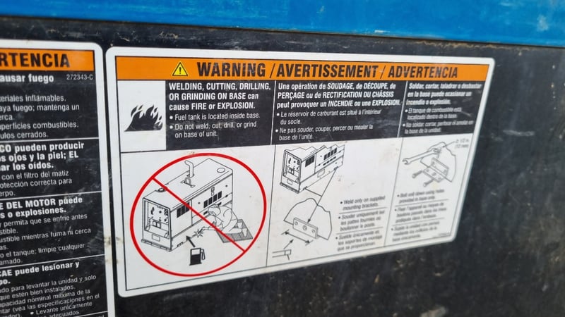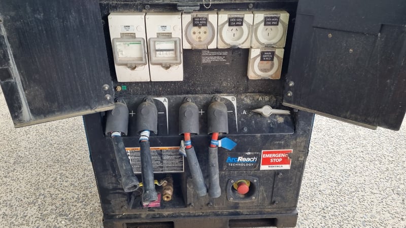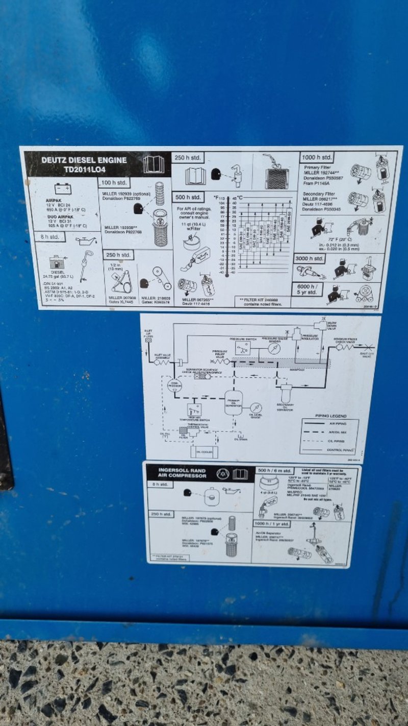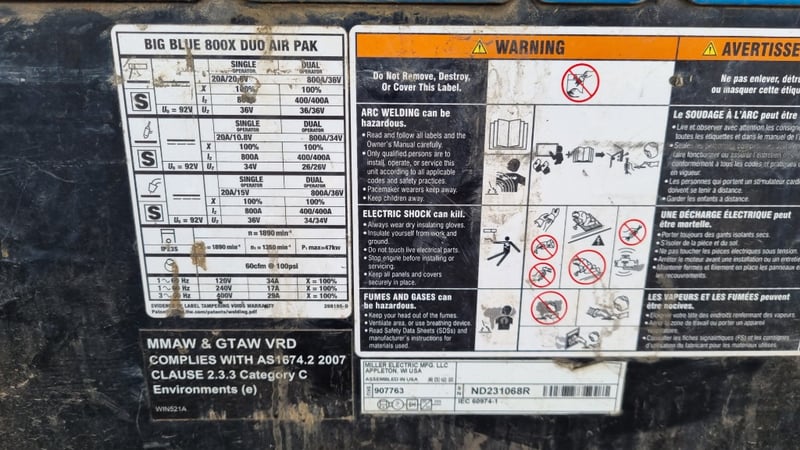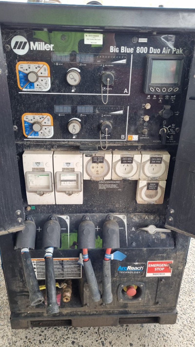 Heavy Duty Relocatable Welding Station, Miller Big Blue 800x Duo AirPak, Deutz AG Diesel Motor, Airpower By Ingersoll- Rand, 3 Phase and Single Phase 15a ElectricalDimensions: 116cm(H) x 170cm(W) x 67cm(D)