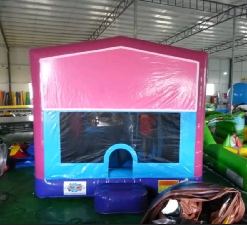 Jumping Castle, Pink/Purple C4 Combo Features a large bounce area, basketball hoop, climbing wall, slide. Well-loved castle has made many kids birthdays one to remember, (blower included), Size: 5.8 Length x 4.5m Width x 4m Height, Slide platform height 2.2m