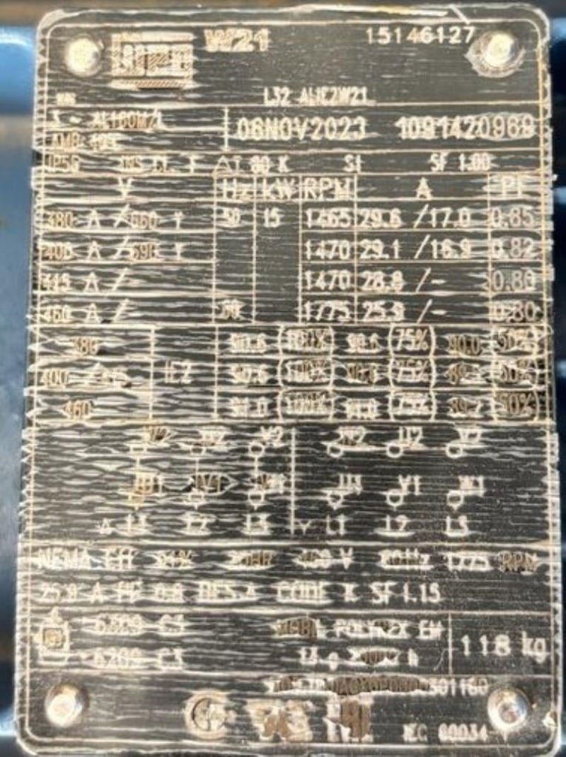 - 2 x 15kW electric WEG motors
