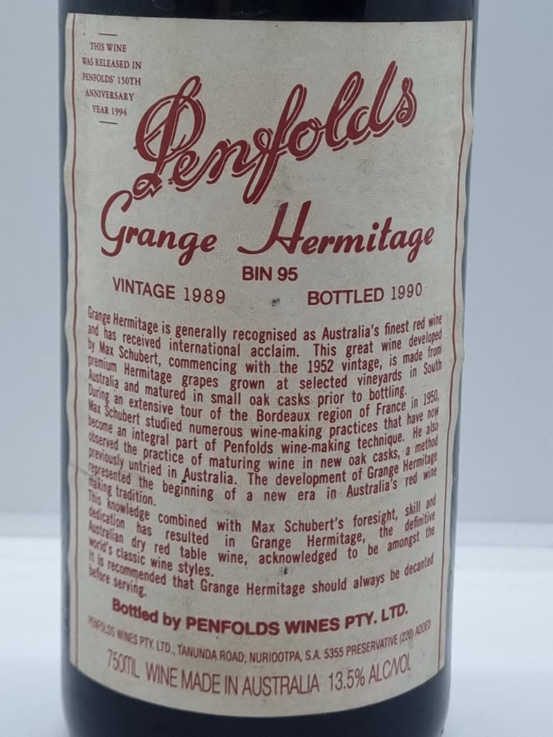 PENFOLDS GRANGE HERMITAGE BIN 95 , VINTAGE 1989, Bottled 1990, 750mL