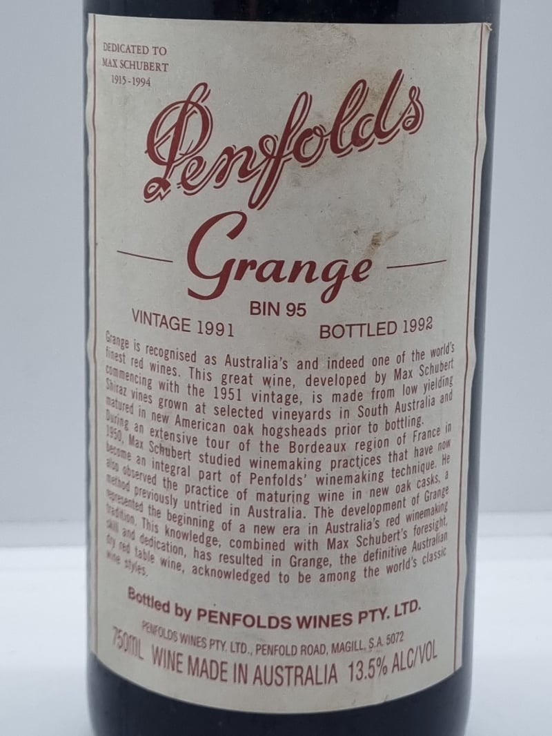 PENFOLDS GRANGE HERMITAGE BIN 95 , VINTAGE 1991, Bottled 1992 750mL