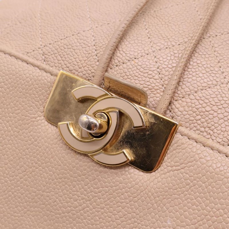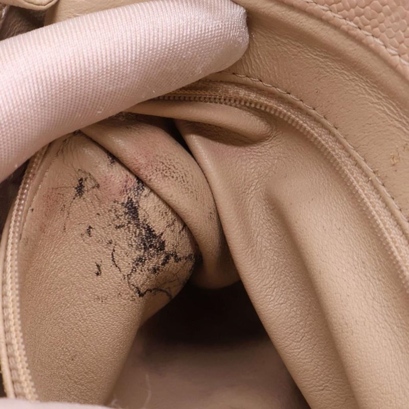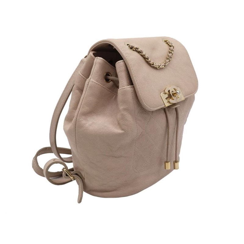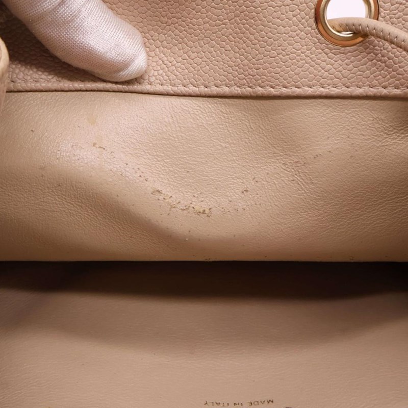 CHANEL BEIGE CAVIAR LEATHER BUSINESS AFFINITY BACKPACK BAG Exterior Material Leather with gold-tone hardware, CC turn-lock closure, a rear patch pocket and dual backpack straps. Interior Material Leather lining with a main compartment and a zipped pocket. Length: 22cm Height: 25cm Depth: 13cm Strap Drop: 35cm Adjustable Additional Condition Report - Moderate sign of wear, tears and darken on exterior - Colour transfer on rear of bag - Visible pen marks, scratches and minor peeling in interior - Sign of wear and scratches on hardware Comes With - Certificate of Authenticity CROSSED DOCKED 155556+14