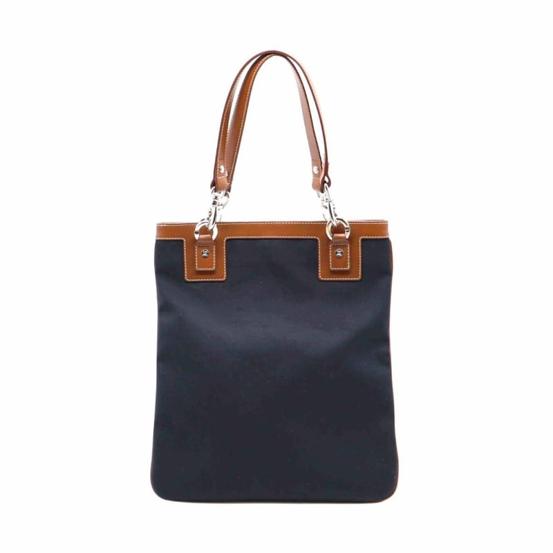 Canvas And Leather Trim With Silver-Tone Hardware, Magnetic Closure At Top And Dual Flat Top Handles.