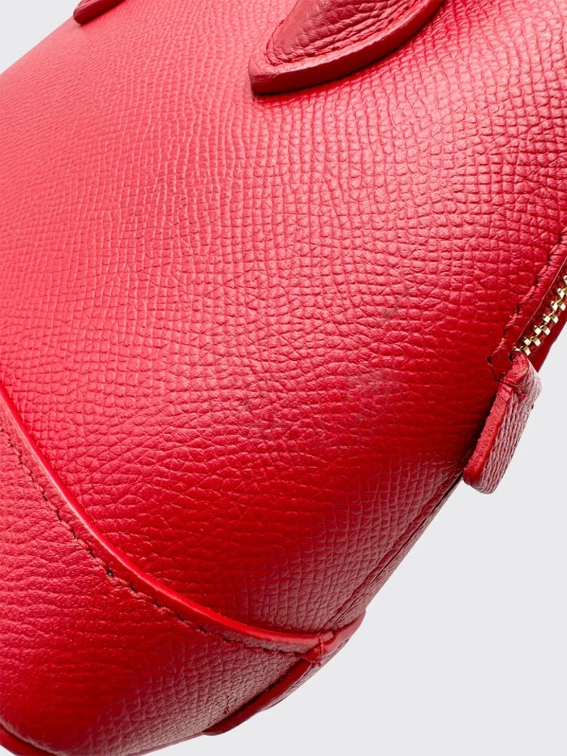 BALENCIAGA XXS RED VILLE BAGItem Size: Height: 17cm, Width: 7cm, Depth: 15cmCondition: 7/10Exterior: White Mark Near Embossed Balenciaga Logo. Colour Transfer On The Back Of The Bag. Minor Scuffing On Corners. Some Colour Transfer Near Gold Buckles. Top Handle In Very Good Condition, Minor Markings. Adjustable And Removable Straps Are In Excellent Condition. Minor Scratches On Hardware. Please Refer To Pictures.Interior: No Peeling, Scratches Or Marks. No Odours. Hardware: Some Scratches And Scuffs On GoldInclusions: Handbag And Store Tags.Condition: Good - Refer To ImagesCROSSDOCK162931+1