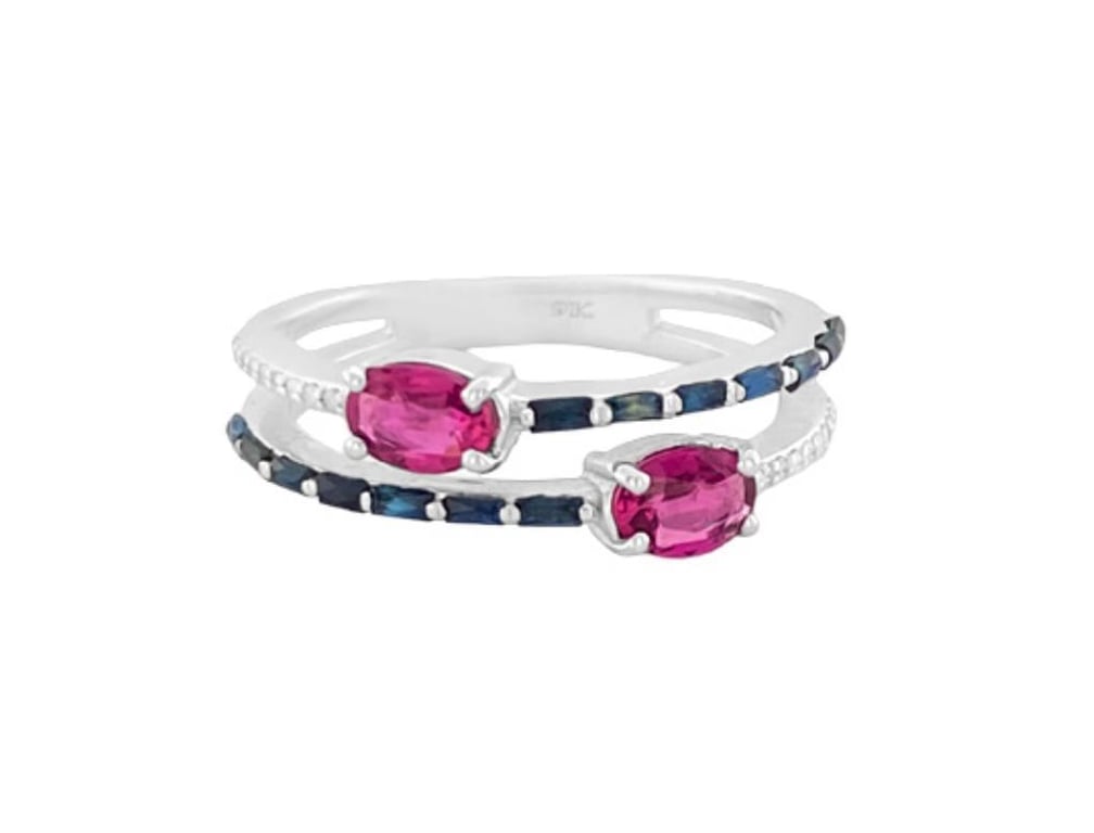 9CT WHITE GOLD RUBELLITE SAPPHIRE AND DIAMOND RING