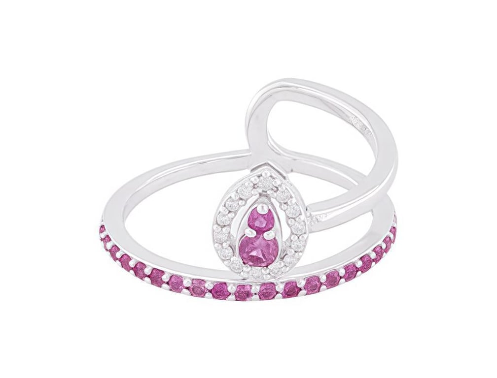 9CT WHITE GOLD PINK SAPPHIRE AND DIAMOND RING