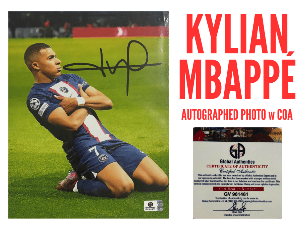 KYLIAN MBAPPÉ AUTOGRAPHED PSG PHOTO – UEFA CHAMPIONS LEAGUE (W/ COA)This 8X10 Photo Of French Superstar Kylian Mbappé Captures His Signature Celebration During A Uefa Champions League Match With Paris Saint-Germain. Bold Autograph Authenticated By Global Authentics With Serial-Numbered Coa.- Kylian Mbappé Signed Photo- Paris Saint-Germain (Champions League) Image- Global Authentics Coa & HologramSize: Condition: Good - Refer To Images+4