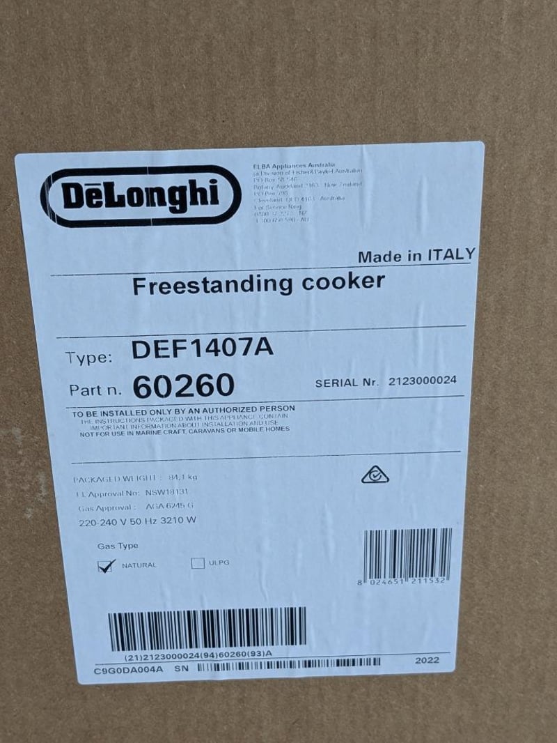 RRP $3,599, Delonghi Freestanding Oven, 90cm Deluxe Dual Fuel, Model: DEF1407A