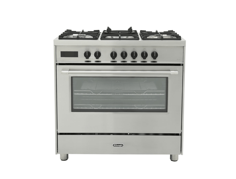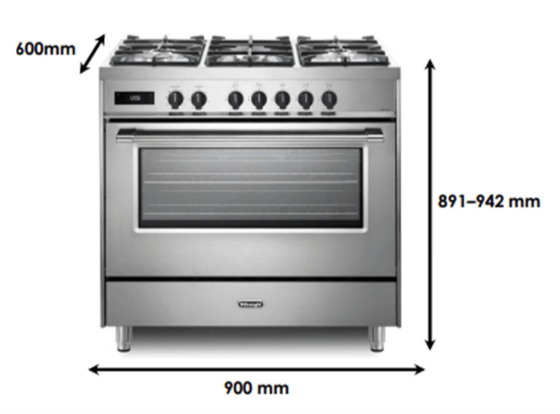 RRP: $3599 Delonghi 90cm Freestanding Dual Fuel Oven/Stove DEF1407S Finish: Stainless Steel w/ Stainless Steel Cabinet and Facia panel. Height 891 mm, Width 900 mm, Depth 600 mm Oven Fuel Type: Electric Cooktop Type: Gas burners Cooktop Fuel Type: Natural Gas Weight 92 kg Accessories included: 1x LP Gas Conversion Kit, 1 x Set Telescopic Shelves, 1 x Wire Rack, 1 Roasting/Grilling Tray, 1 Wok Support, 1 x Moka support. Note: Your Plumber is able to convert this stove to LP gas using the included conversion kit. The Delonghi 90cm Freestanding Dual Fuel Oven/Stove, a versatile addition to your kitchen. With 5 burners, including a Wok Burner, you'll have plenty of space to cook multiple dishes simultaneously. The Twin Fan System ensures superior heat distribution, resulting in more even cooking and quicker cooking times. The telescopic sliding shelf allows for easy and safe checking and removal of dishes. With multilevel cooking, you can cook various types of dishes together without any flavor transfer. The oven is equipped with 2 x 25Watt Twin Halogen lights, providing excellent visibility of your culinary creations. Cleaning is a breeze thanks to the easy clean Durastone Plus enamel interior. The cooking zones offer a range of heat outputs, from 3.9 Mj/h to 14.4 Mj/h, giving you the flexibility to cook with precision. Upgrade your cooking experience with the Delonghi 90cm Freestanding Dual Fuel Oven/Stove.