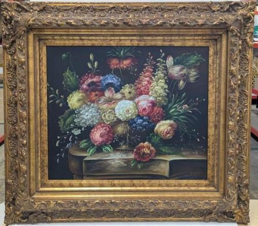 L KERNOriginal Oil Painting On CanvasTitle: Still Life Floral ArrangementImage Size: 50cm x 59.5cmFrame Size: 81.5cm x 91cmSignature Details: Signed Lower RightCondition: Good - Refer To Images586080+20