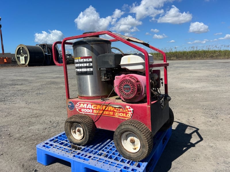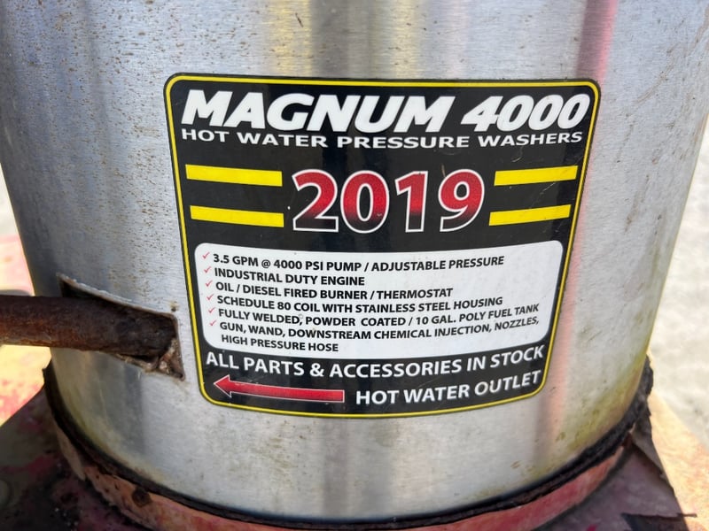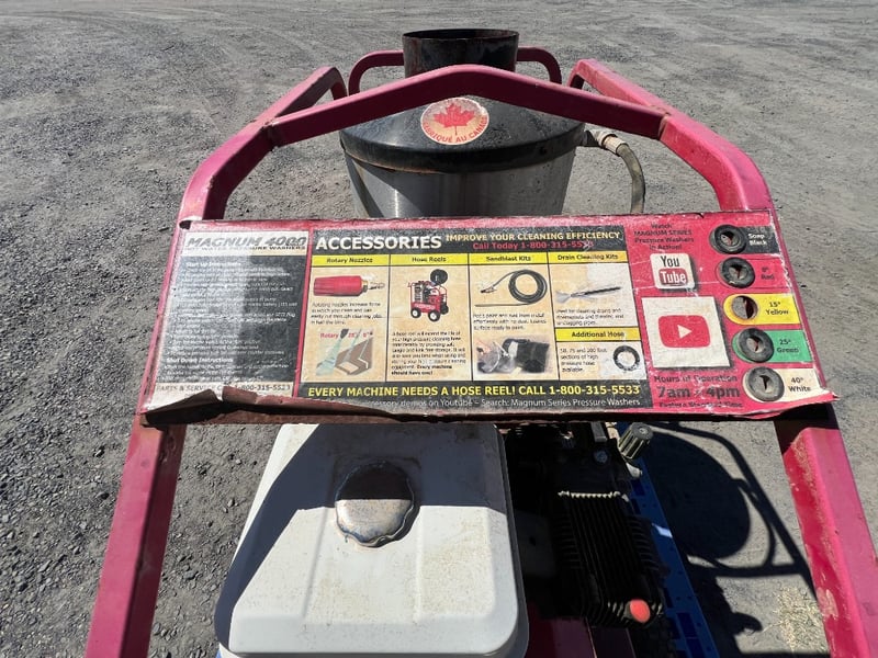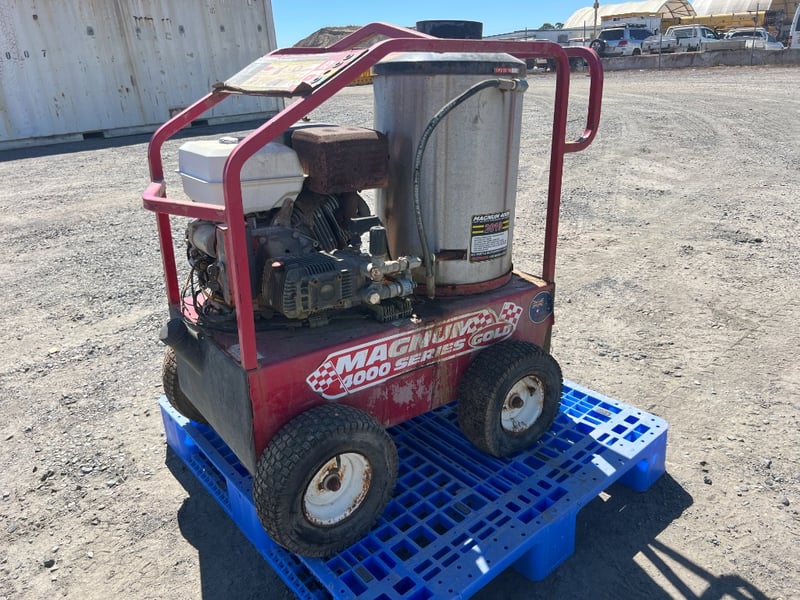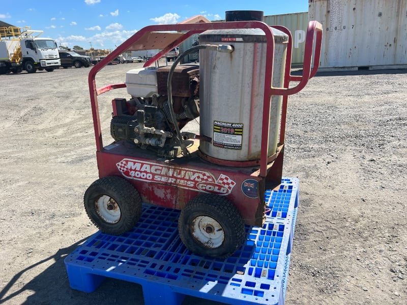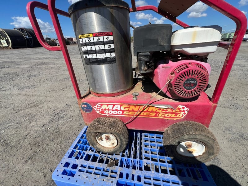 Unreserved Magnum 4000 Hot Water Pressure Washer (Mackay, QLD) Diesel Burner Honda GX390 Petrol Engine Air Cooled Electric and Pull start, (Pull Start Broken) No Battery Rust Present No Wand Unknown Working Condition Inspection Recommended Sold as Is Location: #MACKAY Contact Kyle Haywood | Ph 0487 020 888 | [email protected] Holding Yard 3/263 Connors Road, Paget , MACKAY QLD, Australia